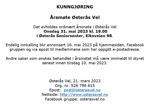 Kunngjøring Årsmøte 2023